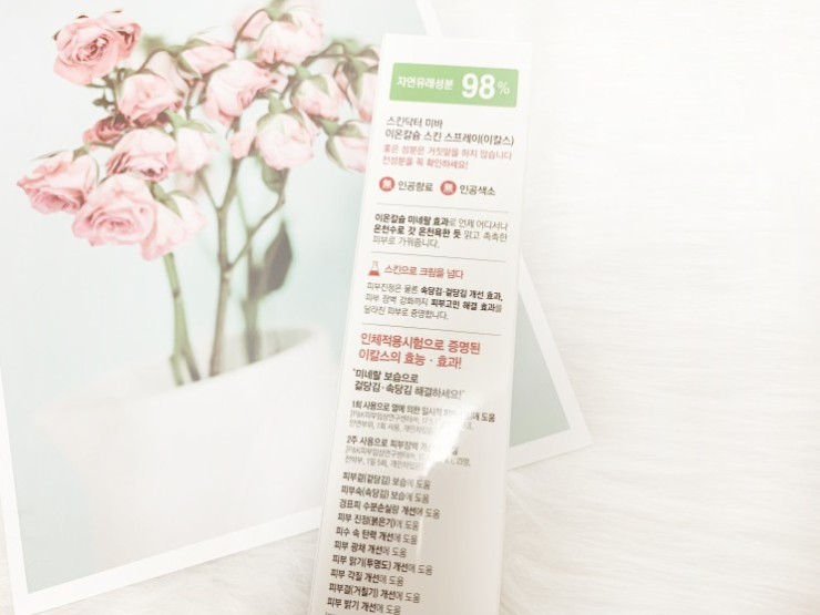 안녕하세요! 아는 사람입니다. 요즘 제가 진짜 간편하게 사용하고 있는 제품을 소개하려고 합니다. 미바의 이온 칼슘 스킨 스프레이 라는 제품인데요. 이온? 칼슘? 이 들어있다고 해서 민감한 피부에 괜찮을까 하고 생각하고 사용을 시작했는데요. 정말 편해요!! 이전에 녹차 스킨 스프레이를 얼굴이랑 온 몸에 잘 사용했거든요! 이 제품도 정말 얼굴부터 온몸에 잘 사용하는 최애템이 되었습니다. 칙칙 뿌리는 그 수분감이 너무 마음에 들어요.